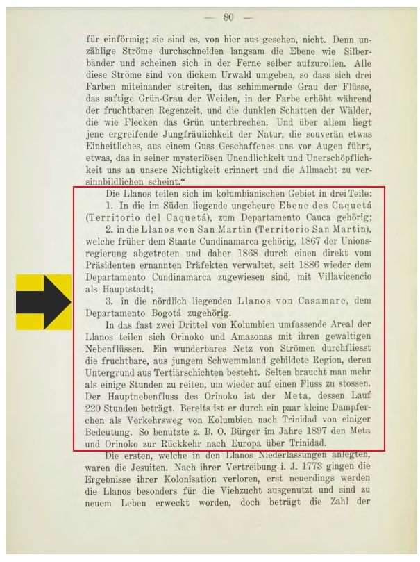 El principal afluente del Orinoco es el Meta, cuyo curso son 220 horas. Algunos ya lo conocen como una ruta de tráfico de Colombia a Trinidad debido a algunos pequeños navíos de vapor. Significado. Entonces usé z. B. O. Bürger en 1897 el Meta y Orinoco para regresar a Europa vía Trinidad.